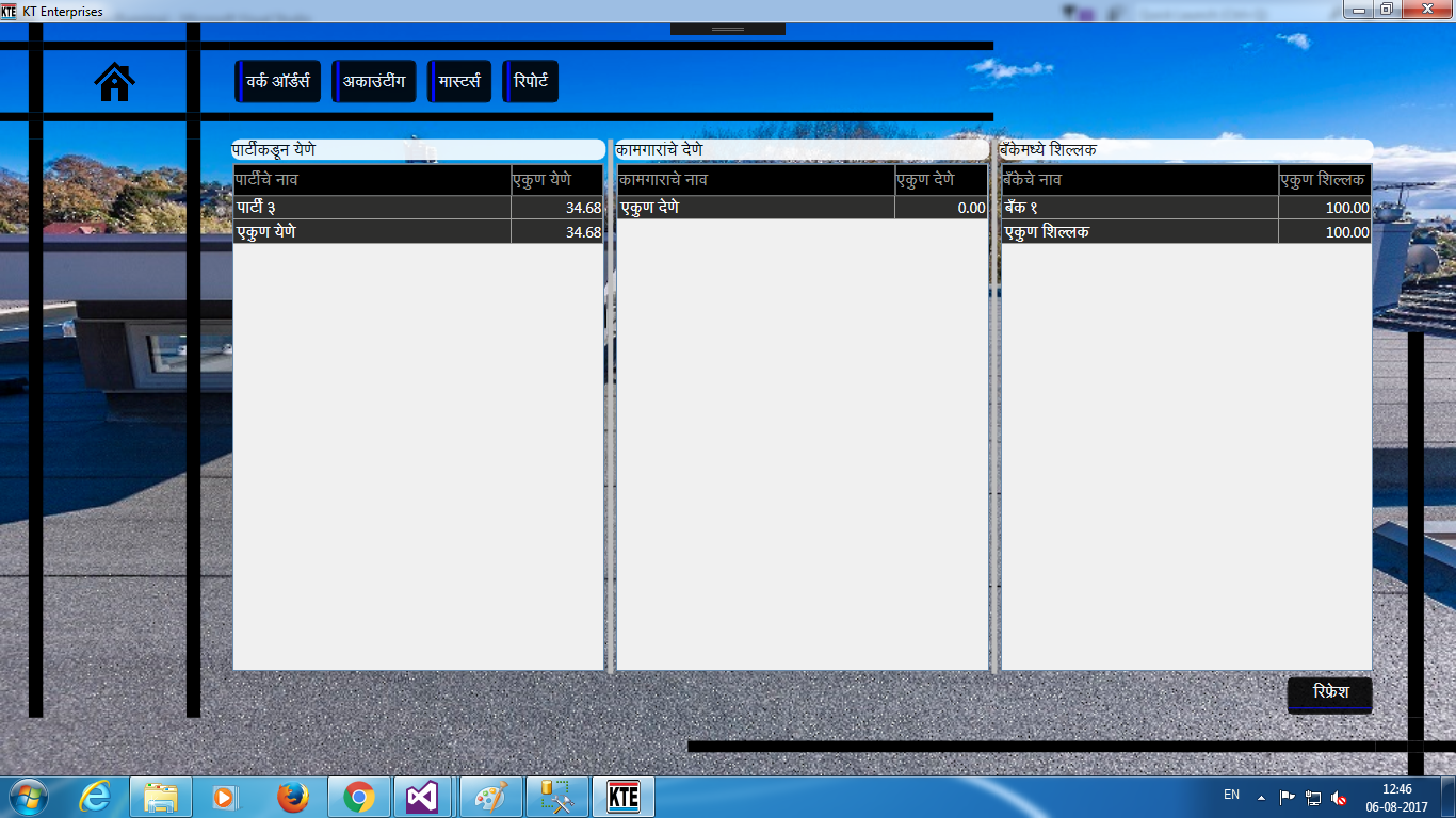 Pending Memo, Customer outstanding, Vendor outstanding, Bank balance. This is a multi-user app,