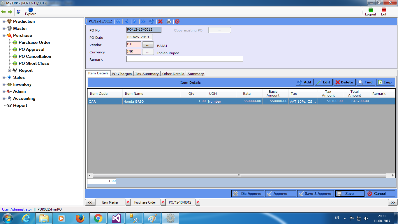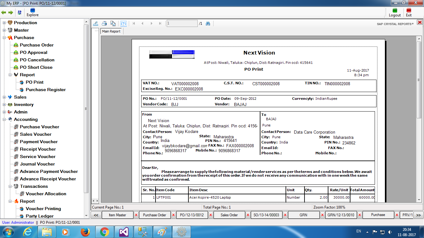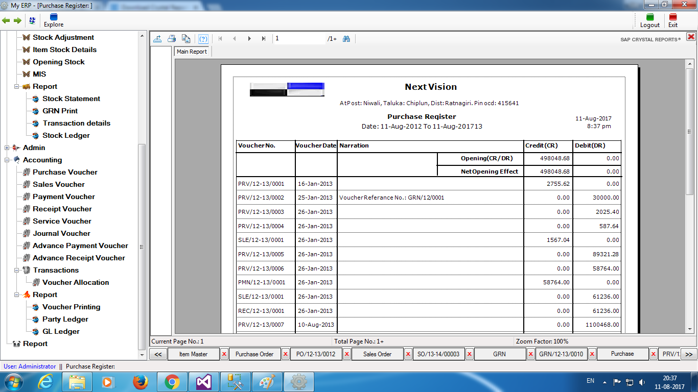 like Memo, Pay-Order, Bill, Receipt Voucher, Payment Voucher etc. System gives quick view for the status of